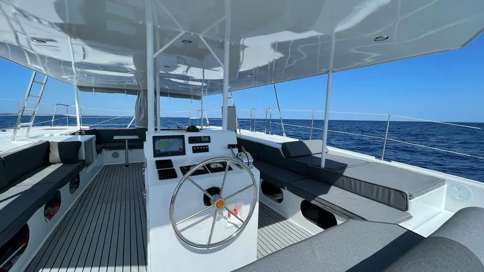 Use the diving board on the roof of the catamaran to jump into the refreshing sea.
